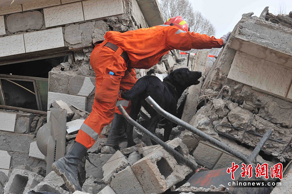 名貴的黑貝犬是中國國家救援隊趕赴青海玉樹地震災(zāi)區(qū)6只搜救犬隊成員之一,身價近百萬元人民幣。4月21日清晨八時許,它在救援隊員的帶領(lǐng)下,到玉樹地震災(zāi)區(qū)中心商業(yè)街廢墟里,四處奔波,盡職盡力尋找生命跡象。10時后,他和救援隊員都出現(xiàn)高原反應(yīng),暫時休整,準(zhǔn)備再戰(zhàn)。賈國榮 攝