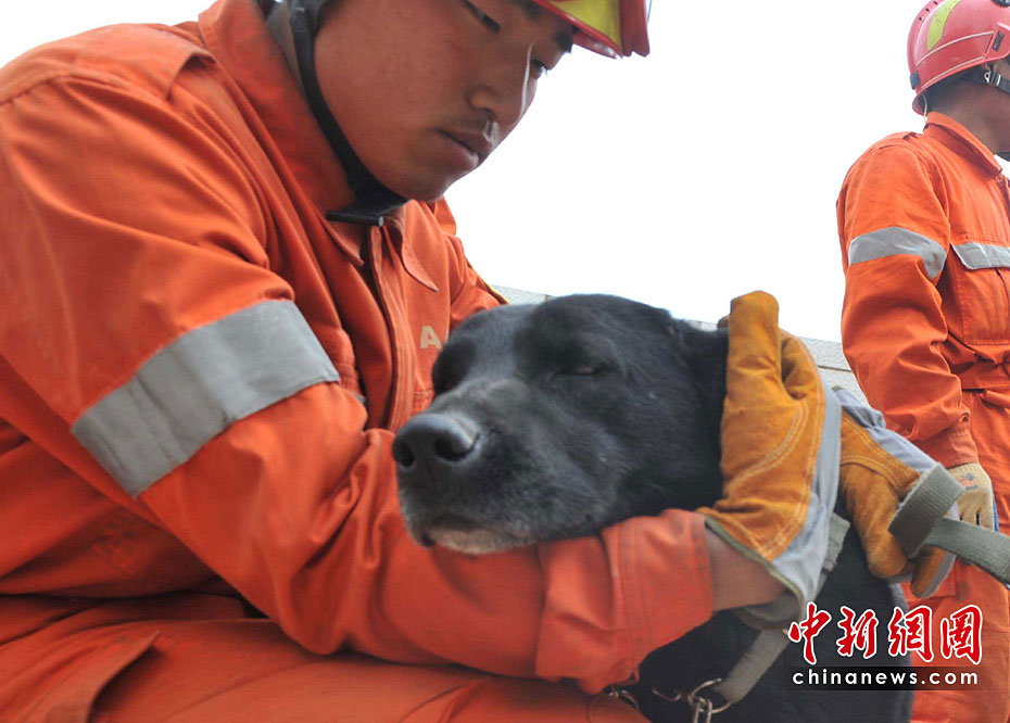 名貴的黑貝犬是中國國家救援隊(duì)趕赴青海玉樹地震災(zāi)區(qū)6只搜救犬隊(duì)成員之一,身價近百萬元人民幣。4月21日清晨八時許,它在救援隊(duì)員的帶領(lǐng)下,到玉樹地震災(zāi)區(qū)中心商業(yè)街廢墟里,四處奔波,盡職盡力尋找生命跡象。10時后,他和救援隊(duì)員都出現(xiàn)高原反應(yīng),暫時休整,準(zhǔn)備再戰(zhàn)。賈國榮 攝