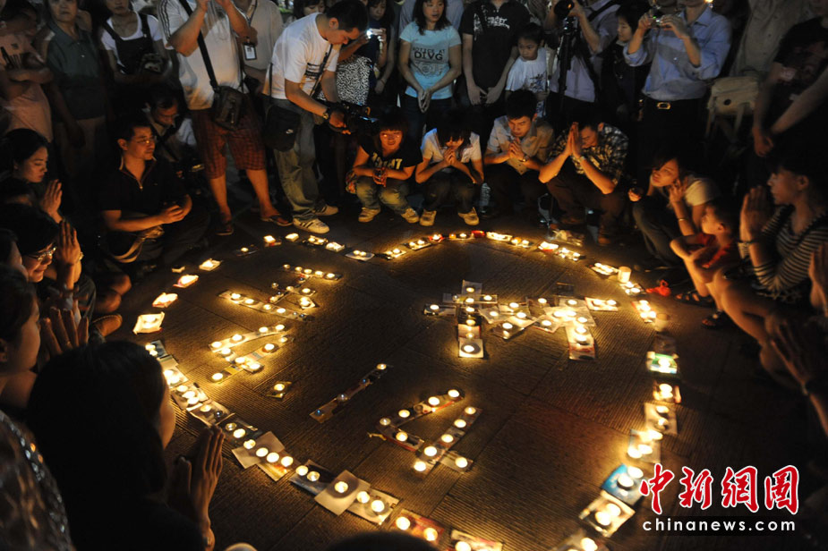 4月21日晚,上千名廣西壯族自治區(qū)首府南寧市的市民,聚集在南寧市民族廣場(chǎng),哀悼玉樹(shù)地震的死難同胞。中新社發(fā) 蔣雪林 攝
