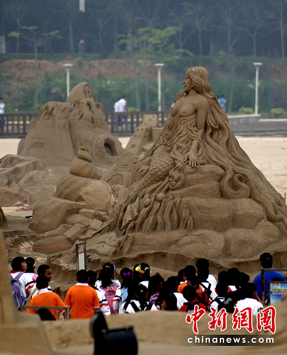 第三屆廈門(mén)觀音山沙雕文化公園于4月22日在廈門(mén)觀音山黃金沙灘投入試運(yùn)營(yíng)。本屆沙雕文化公園將以“暢游歷史”及“世博文化”為主題,共匯集70余座沙雕作品,規(guī)模繼續(xù)在亞洲稱雄。本次2010年觀音山沙雕文化公園將分為六大區(qū)域,分別是歷史主題區(qū)、世博專區(qū)、海洋文化區(qū)、競(jìng)賽區(qū)、DIY體驗(yàn)區(qū)和休閑配套區(qū)。尤以世博專區(qū)和歷史主題區(qū)為展示重點(diǎn)。王東明 攝