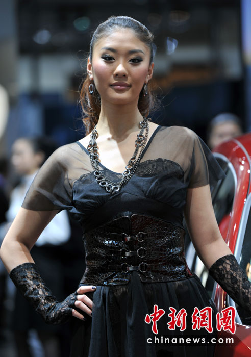 “第十一屆北京國(guó)際車(chē)展”是名車(chē)新品搶先亮相的舞臺(tái),也成了車(chē)模們爭(zhēng)奇斗艷的場(chǎng)所,參觀者在車(chē)展中可以享受兩道視覺(jué)大餐。中新網(wǎng)記者 金碩 攝