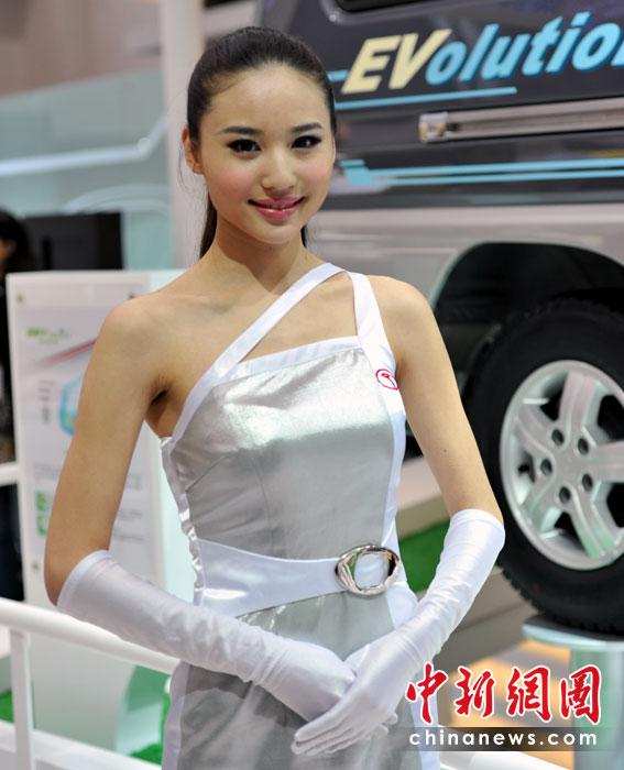 “第十一屆北京國際車展”是名車新品搶先亮相的舞臺,也成了車模們爭奇斗艷的場所,參觀者在車展中可以享受兩道視覺大餐。中新網(wǎng)記者 金碩 攝