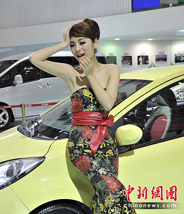 “第十一屆北京國際車展”是名車新品搶先亮相的舞臺,也成了車模們爭奇斗艷的場所,參觀者在車展中可以享受兩道視覺大餐。中新網(wǎng)記者 金碩 攝