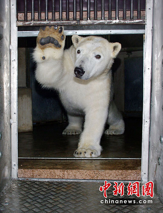 4月23日,德國紐倫堡動物園內,兩頭北極熊在公園內的水池中盡情玩耍,享受春天的陽光。圖片來源:中國新聞網(wǎng)