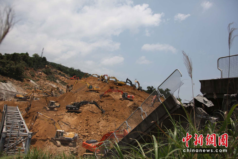 4月26日,臺(tái)灣“北二高”基隆段山崩斷橋意外第2天,大批工程人員使用近50臺(tái)怪手持續(xù)開(kāi)挖,但尚未尋獲被埋的車輛和失蹤者。這起“走山”斷橋意外發(fā)生在25日,一座高百米的山坡全然崩坍,土石覆蓋道路長(zhǎng)約200米、面積達(dá)3個(gè)足球場(chǎng)之大,令南下北上的交通大受影響。 董會(huì)峰 攝