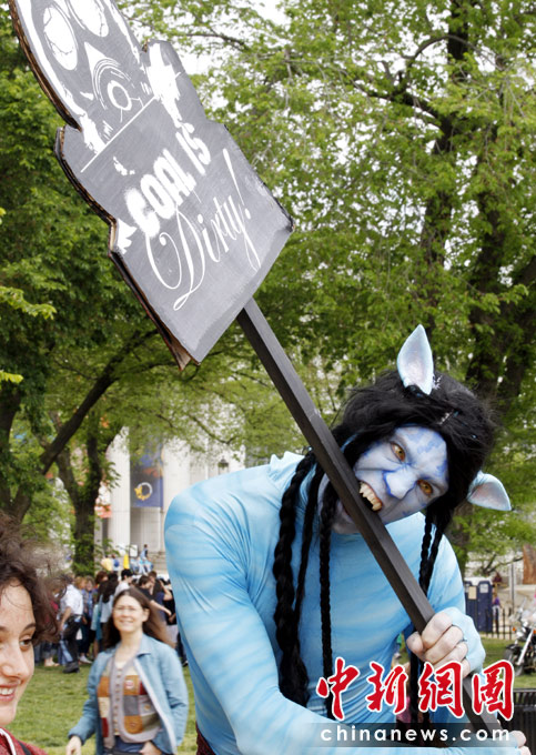 2010年4月25日,在美國首都華盛頓,兩名扮成電影《阿凡達(dá)》里納美人模樣的演員參加“氣候集會”演唱會。當(dāng)天,華盛頓舉行演唱會,紀(jì)念“世界地球日”。4月22日是第41個“世界地球日”。