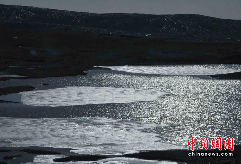 屬于長江、黃河、瀾滄江三江源地區(qū)的青海玉樹地震災(zāi)區(qū),自然保護(hù)區(qū)的18個核心區(qū)域中,有10個位于玉樹州境內(nèi),占總面積的72%。4月下旬,記者深入災(zāi)區(qū)縱深各地,災(zāi)后重建正面臨保護(hù)生態(tài)環(huán)境、為三江源建起一道生態(tài)屏障的難題;近日緊迫的防疫工作,必須使用滅菌效果好、對環(huán)境無污染的消毒劑。圖為星羅棋布的湖泊正在春風(fēng)化冰之時。中新社記者 賈國榮攝