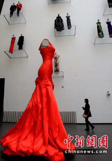 4月27日,上海世博會意大利館對媒體開放,館內(nèi)陳列的品牌時裝,氣派如貴婦云步。中新社發(fā) 潘索菲 攝