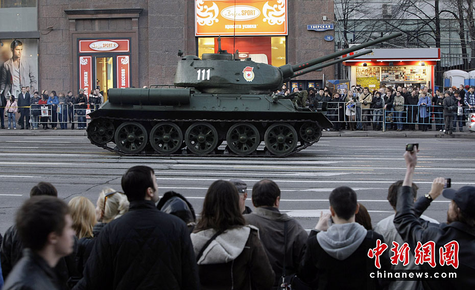 此次紅場(chǎng)閱兵包括兩部分內(nèi)容:歷史部分和現(xiàn)代部分。歷史部分由身穿衛(wèi)國(guó)戰(zhàn)爭(zhēng)時(shí)期軍服的士兵在鵝卵石道上進(jìn)行,同時(shí)還會(huì)有9輛T-34坦克和8輛SU-100自行火炮,F(xiàn)代部分由13輛老虎裝甲車、BTR-80裝甲車、BMP-3步兵戰(zhàn)車、T-90A坦克和S-400防空系統(tǒng)等。圖片來(lái)源:中國(guó)新聞網(wǎng)