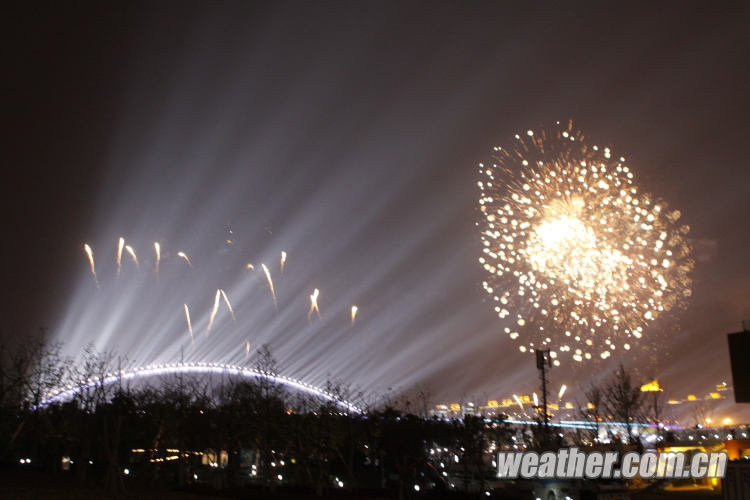 2010年4月27日,上海世博會開幕式彩排順利進(jìn)行。圖為燈光與煙花互相映襯,十分絢麗。卞赟 攝