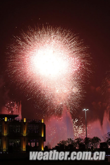 2010年4月27日,上海世博會開幕式彩排順利進行。圖為酷似英國館的煙花。卞赟 攝