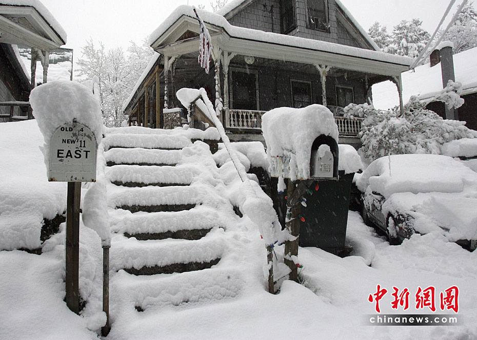 當?shù)貢r間4月28日,美國佛蒙特州部分地區(qū)遭大雪襲擊。這場大雪給人們的出行帶來不便。圖片來源:中國新聞網(wǎng)