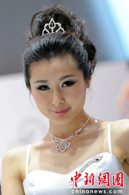 “第十一屆北京國際車展”是名車新品搶先亮相的舞臺,也成了車模們爭奇斗艷的場所,參觀者在車展中可以享受兩道視覺大餐。中新網記者 金碩 攝