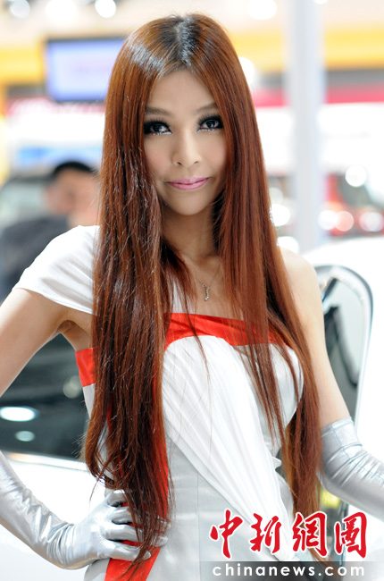 “第十一屆北京國際車展”是名車新品搶先亮相的舞臺,也成了車模們爭奇斗艷的場所,參觀者在車展中可以享受兩道視覺大餐。中新網(wǎng)記者 金碩 攝