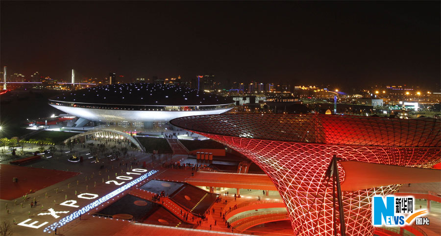4月30日,中國2010年上海世博會開幕。世博軸和世博文化中心亮燈。裴鑫攝