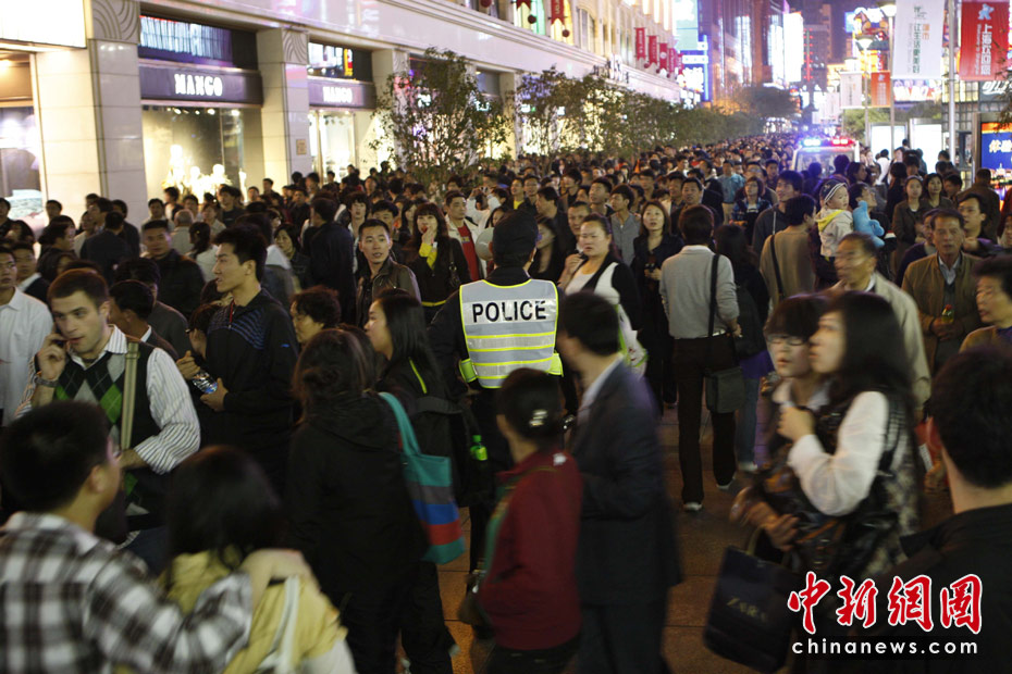 4月30日,上海世博會(huì)開幕,黃浦江畔火樹銀花姹紫嫣紅,這座夢(mèng)想成真城市的千萬(wàn)居民,在這個(gè)注定難忘的夜晚盡情燃燒和釋放著自己的激情。圖為擁擠的外灘。中新社發(fā) 盛佳鵬 攝