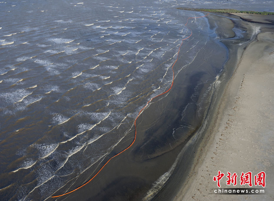 4月30日,在美國路易斯安那州海岸,為阻隔原油擴散而設的護欄帶被海風浪沖到岸邊。當天,美國總統(tǒng)奧巴馬下令調查墨西哥灣石油鉆井平臺爆炸事件,以避免將來類似事件再次發(fā)生。平臺爆炸沉沒后泄漏的原油當天已漂至美國沿岸。圖片來源:中國新聞網