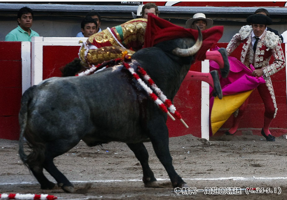 24日,西班牙知名斗牛士何塞·托馬斯在墨西哥斗牛時遭一頭公牛頂傷,神志不清。圖片來源:中國新聞網(wǎng)>>點擊觀看詳細內(nèi)容