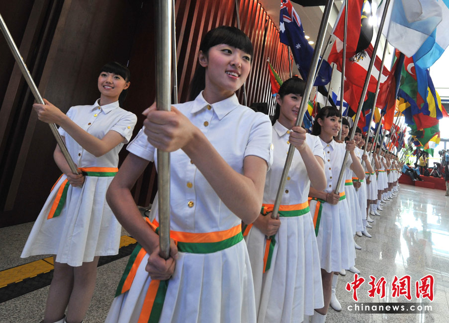 5月1日,2010年上海世博會正式開園,英姿颯爽的女子旗手們參加清晨的儀式。中新社記者 賈國榮攝
