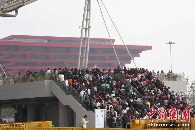 5月1日,上海世博會(huì)正式開園迎客,首批游客入園參觀。圖為上海世博會(huì)開園第一天。在入園6號(hào)口約有10萬人等待入口。宓家峰 攝