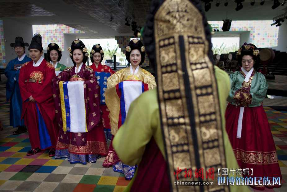 5月1日,上海世博會正式開園。圖為在韓國館內(nèi)接待人員身著民族特色服飾迎接參觀者。
