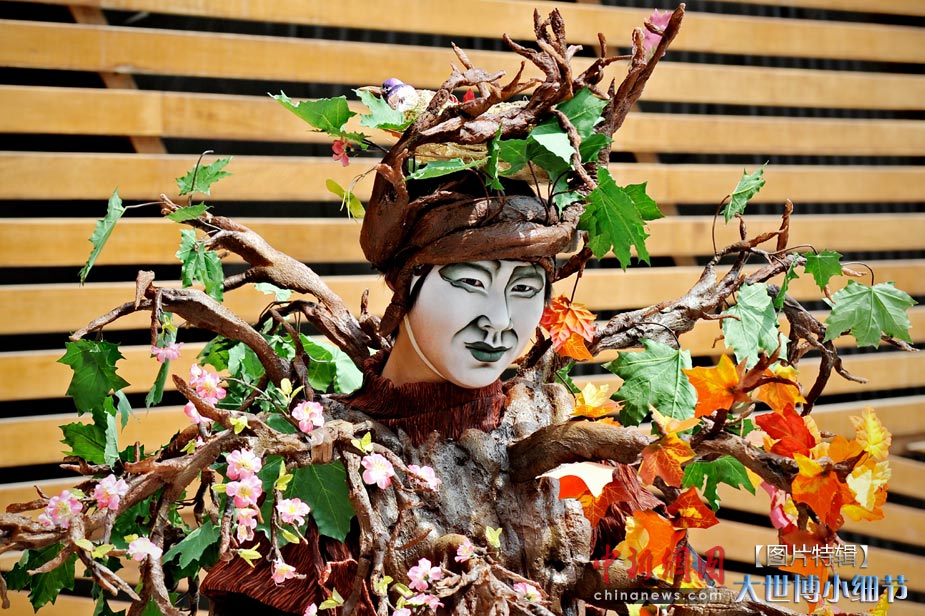 5月1日,上海世博會(huì)正式開(kāi)園,當(dāng)日有20萬(wàn)人次的游客參觀了世博園。世博首日,許許多多的小細(xì)節(jié)都帶給人一種全新的體驗(yàn)。圖為在加拿大館一位扮作大樹(shù)的表演者。