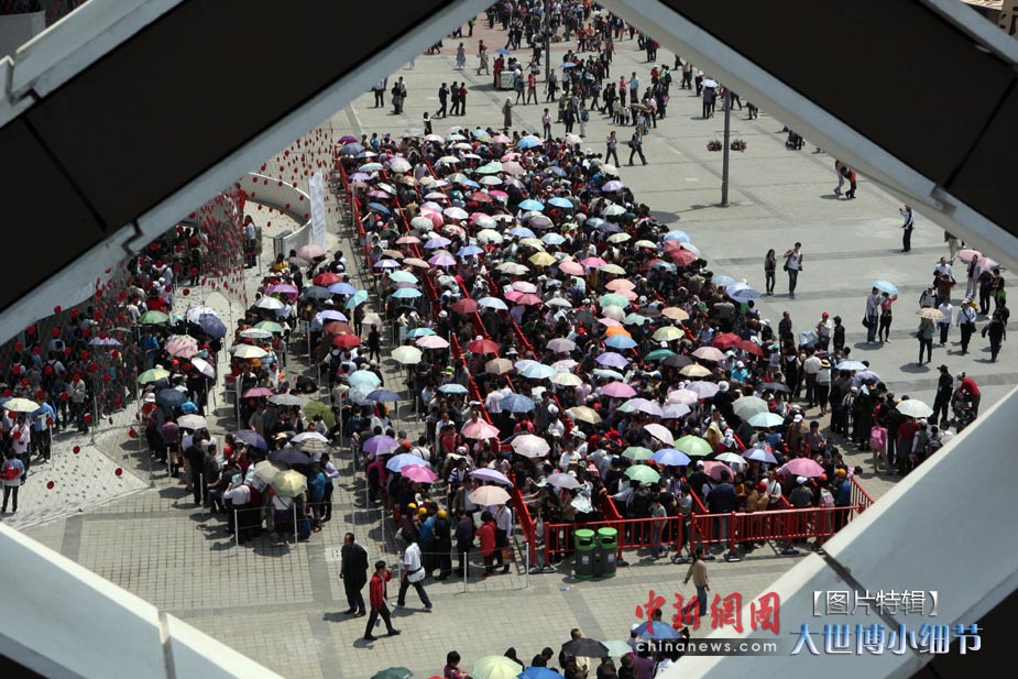 5月1日,上海世博會正式開園,當日有20萬人次的游客參觀了世博園。世博首日,許許多多的小細節(jié)都帶給人一種全新的體驗。圖為上海世博會開園首日游人如潮,各個國家館外都排起了等候參觀的長隊。中新社發(fā) 湯彥俊 攝