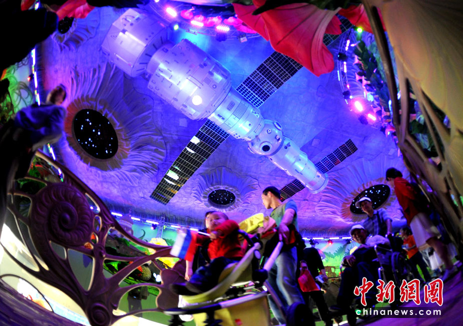 5月2日,上海世博園俄羅斯館內(nèi)的奇幻景觀吸引吸引許多兒童前往參觀!皟和壑械奈磥硎澜纭笔嵌砹_斯館所反映的重要主題。中新社發(fā) 廖攀 攝
