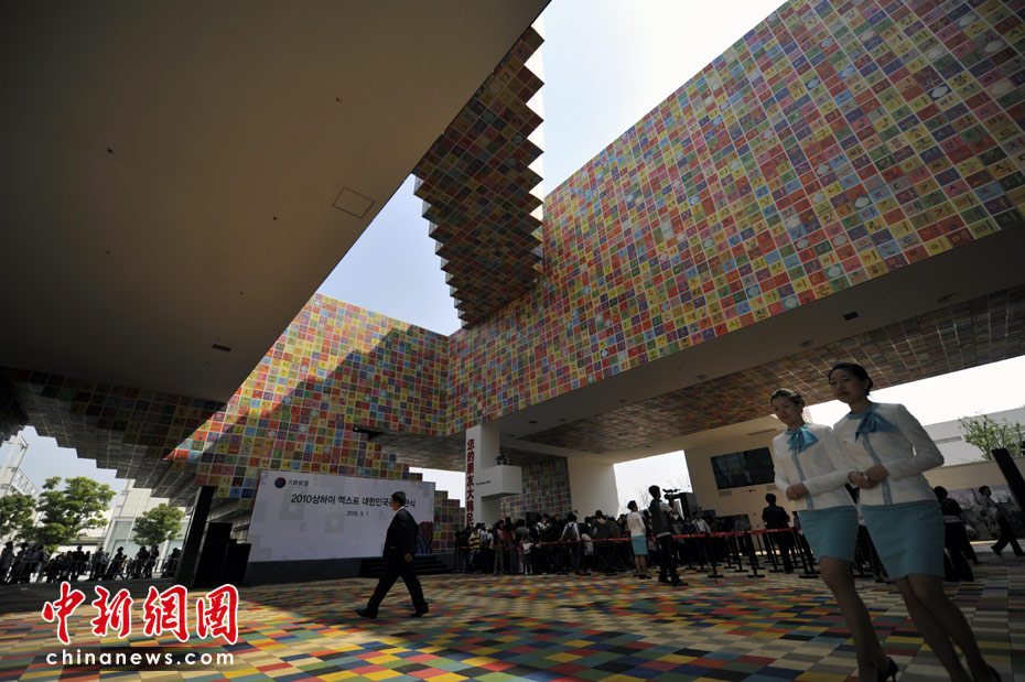 與普通建筑物不同,韓國國家館由于使用韓文字母構(gòu)筑,其底層的絕大部分為開放空間,也就是說沒有門,以充分體現(xiàn)韓國的開放性和包容性。展館底層地面,鋪設(shè)了不同色彩的地磚。據(jù)介紹,色彩斑斕的地面其實(shí)是韓國首都首爾地圖,這張地圖為首爾實(shí)際面積的1/300。濃縮的首爾居然移植到了上海,其嶄新的符號化空間,為上海與首爾之間的直接交流建立起一個全新的平臺。中新網(wǎng)記者 王紅綱 攝