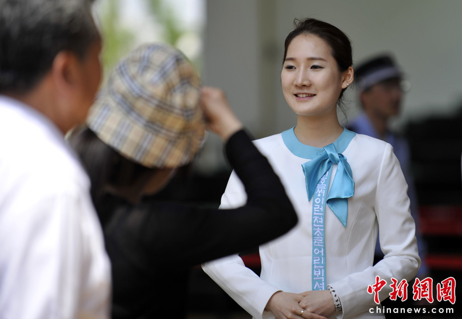 溫柔美麗的韓國(guó)館禮儀小姐。中新網(wǎng)記者 王紅綱 攝