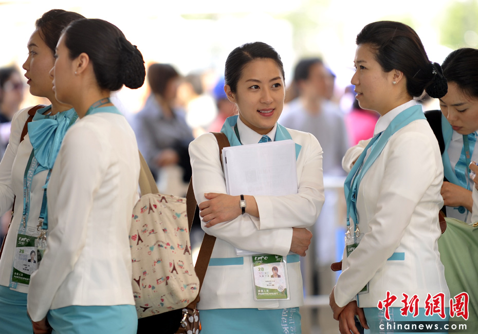 溫柔美麗的韓國(guó)館禮儀小姐。中新網(wǎng)記者 王紅綱 攝