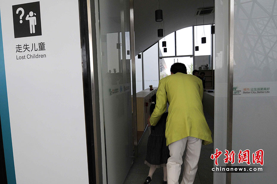 5月2日清晨,7歲的林姝彤小朋友剛跟著伯伯嬸嬸進(jìn)入上海世博園,就在亂哄哄的人流中走丟了,志愿者把她領(lǐng)到走失兒童認(rèn)領(lǐng)處。服務(wù)小姐在詢問她的姓名等關(guān)鍵詞之后,會立即廣播尋人啟示。結(jié)果,她很快就和親人團(tuán)圓了。中新社記者 賈國榮 攝