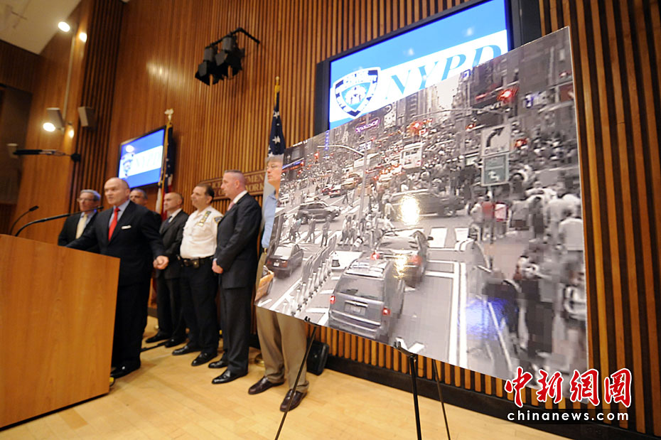 美國當?shù)貢r間5月2日,紐約市警察局長凱利在記者會上公布了紐約時代廣場爆炸事件現(xiàn)場照片。同時他還指出,沒有證據(jù)顯示巴基斯坦塔利班策劃了1日傍晚發(fā)生在紐約時報廣場上的未遂汽車炸彈襲擊事件。圖片來源:中國新聞網(wǎng)
