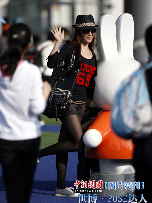 逛世博一定會拍照留念,擺一個漂亮有創(chuàng)意的pose尤為重要。面對著鏡頭,挺胸收腹翹臀,一個微笑,一個手勢,秀出自己的活力。心中一定要默念:“我留下的不是照片,是心情!”中新社記者 盛佳鵬 攝