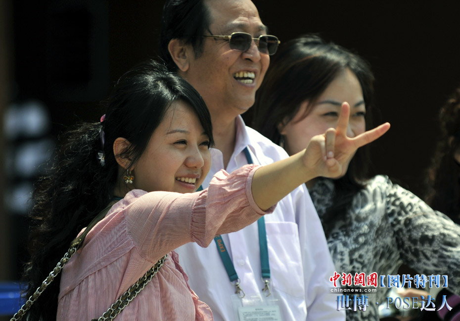 逛世博一定會拍照留念,擺一個漂亮有創(chuàng)意的pose尤為重要。面對著鏡頭,挺胸收腹翹臀,一個微笑,一個手勢,秀出自己的活力。心中一定要默念:“我留下的不是照片,是心情!”巴西館外的一個女孩的勝利pose,這是最為普遍的造型設(shè)計(jì)。中新網(wǎng)記者 王紅綱 攝