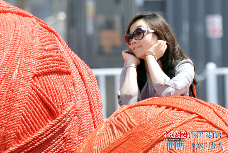 逛世博一定會拍照留念,擺一個漂亮有創(chuàng)意的pose尤為重要。面對著鏡頭,挺胸收腹翹臀,一個微笑,一個手勢,秀出自己的活力。心中一定要默念:“我留下的不是照片,是心情!”。用手托腮,做花朵狀是標準的可愛造型。中新網記者 王紅綱 攝