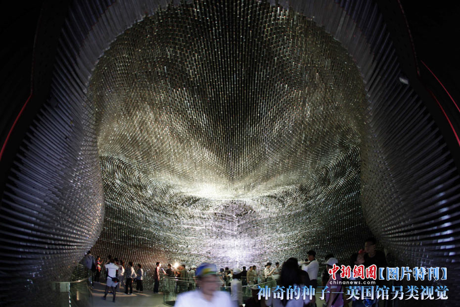 上海世博園開園才數(shù)日,自號(hào)“種子圣殿”的英國(guó)館已成人氣最旺場(chǎng)館之一。該館由6萬(wàn)根亞克力桿巧妙構(gòu)成,隨風(fēng)搖動(dòng),頗為新奇。其每根桿子里都含有植物種子。中新社記者 盛佳鵬 攝