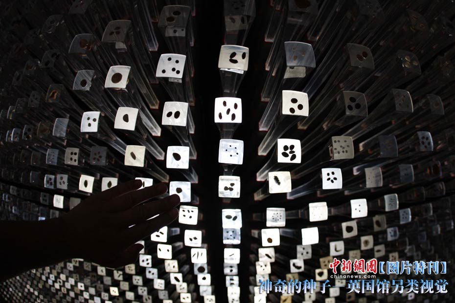 上海世博園開園才數(shù)日,自號(hào)“種子圣殿”的英國館已成人氣最旺場(chǎng)館之一。該館由6萬根亞克力桿巧妙構(gòu)成,隨風(fēng)搖動(dòng),頗為新奇。其每根桿子里都含有植物種子。中新社記者 盛佳鵬 攝