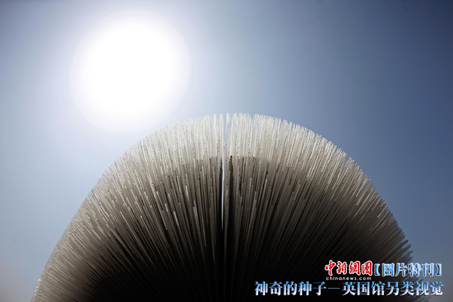 上海世博園開園才數(shù)日,自號“種子圣殿”的英國館已成人氣最旺場館之一。該館由6萬根亞克力桿巧妙構成,隨風搖動,頗為新奇。其每根桿子里都含有植物種子。中新社記者 盛佳鵬 攝