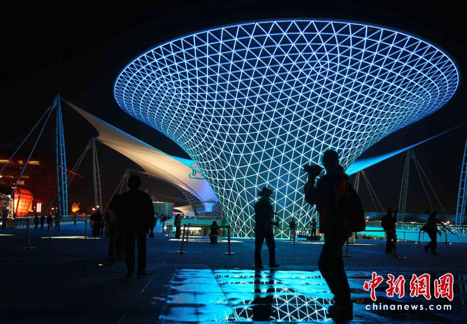 夜幕下的上海世博園區(qū)處處流露光華與璀璨,世博軸上的“陽光谷”成為一個(gè)個(gè)流光溢彩的“夜光杯”,以不同色調(diào)交織成流動(dòng)的光影旋律,給游客們帶來難以忘懷的感受。中新社發(fā) 宗金柱 攝