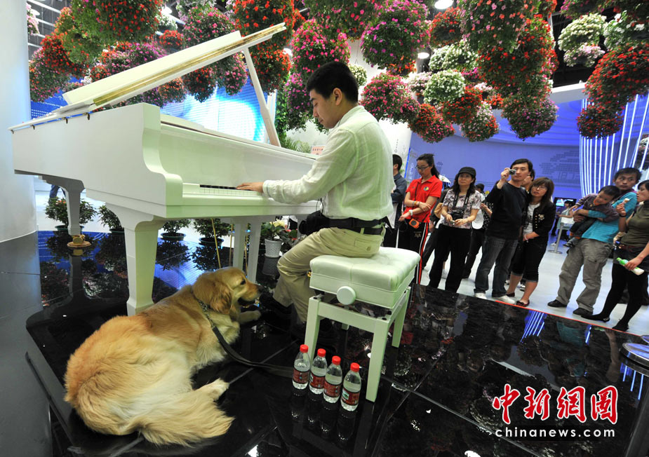 5月4日是上海世博會第四天,盲人鋼琴家孫巖在生命陽光館專設(shè)區(qū)域為眾多殘疾人和觀眾演奏,導(dǎo)盲犬靜臥在他的腳邊,這是世博會歷史上第一次為殘疾人設(shè)館。孫巖2005年獲得“日本橫濱第一屆國際殘疾人鋼琴比賽”金獎,他是中央音樂學(xué)院有史以來第一位盲人大學(xué)生和研究生。他的傾情演奏感動全場,掌聲連連。中新社發(fā) 賈國榮 攝