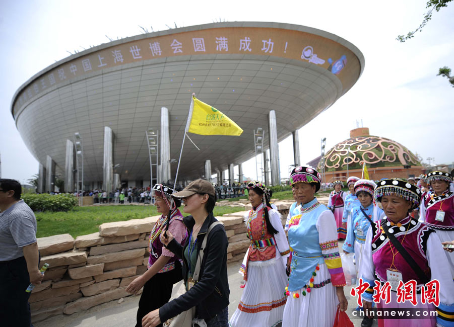 5月4日,上海世博園,游客走過以月亮船位造型的沙特館。 中新社發(fā) 盛佳鵬 攝
