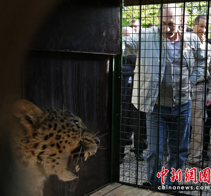 近日,俄羅斯總理普京來到2014年冬奧會(huì)舉辦地索契一家動(dòng)物園,觀看一頭用東北虎換來的波斯豹。普京饒有興致地觀察了一會(huì)兒后,對(duì)這頭剛剛到來、還有些認(rèn)生的豹說:“別害怕,跑起來”,還向它做了個(gè)飛吻。此次從伊朗引進(jìn)波斯母豹,是希望與本地的土庫(kù)曼尼斯坦公豹交配,以挽救這一瀕臨滅絕的物種。