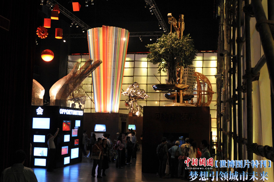 上海世博會(huì)城市未來館位于E片區(qū),館內(nèi)的展示以互動(dòng)方式開始,邀請(qǐng)參觀者暢想未來的城市,然后運(yùn)用影片、書籍和雕塑等方式,體現(xiàn)歷史上人們對(duì)未來城市的夢(mèng)想、設(shè)計(jì)與實(shí)踐,表明未來城市建立在今日挑戰(zhàn)的基礎(chǔ)上,并且暢想未來城市的各種可能,闡述推動(dòng)人類進(jìn)步永恒不變的精神元素。展望未來城市,一方面人類城市的種種現(xiàn)實(shí)、挑戰(zhàn)和危機(jī)推動(dòng)人們?cè)谒伎贾袑ふ页鞘械某雎,另一方面人類不懈的?chuàng)新能力和科技的飛速進(jìn)步也把人們引向不可思議的未來城市。中新社記者 廖攀 攝
