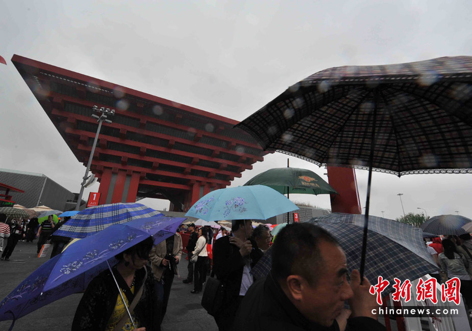 5月5日,上海世博會(huì)迎來(lái)開(kāi)園五天來(lái)首個(gè)春雨天,雨中的中國(guó)館依然是游客參觀的最愛(ài)。中新社記者 賈國(guó)榮攝