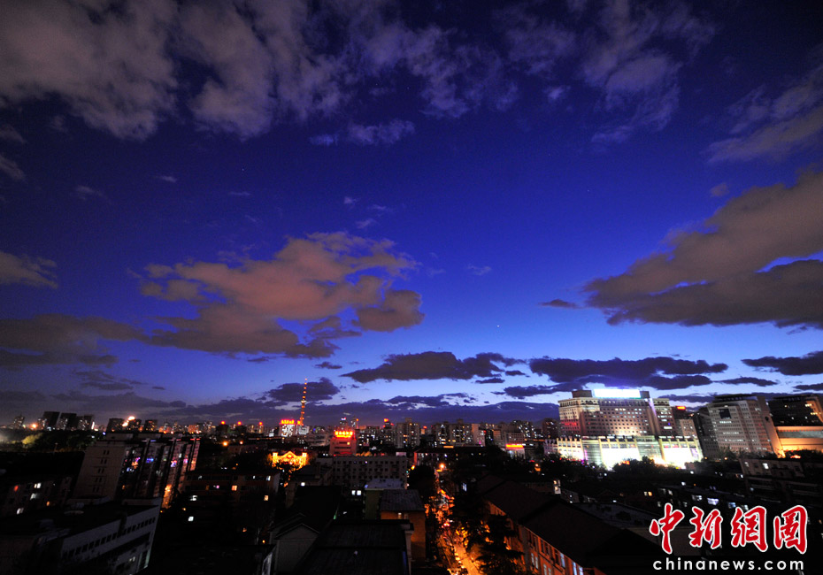5月5日立夏,京城降雨今晨剛剛結束,霧氣伺機又起。傍晚時分,隨著四級北風的到來,京城天氣逐漸轉晴,霧氣慢慢消散天空彤云密布夜色瑰麗。中新網(wǎng)記者 金碩 攝