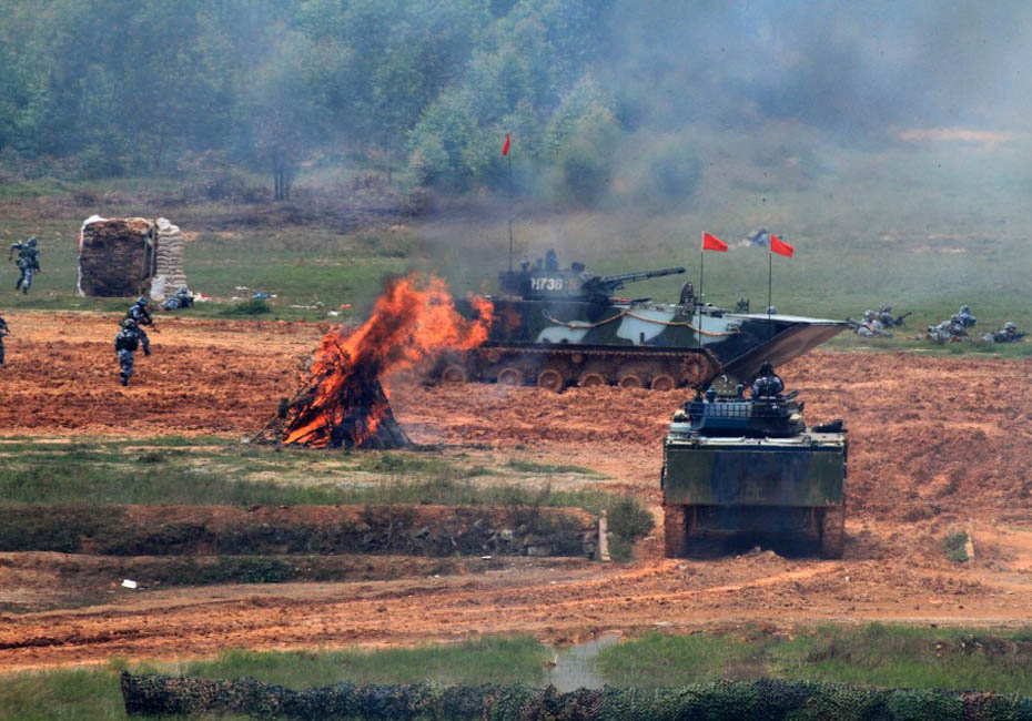 海軍陸戰(zhàn)隊(duì)在訓(xùn)練場(chǎng)進(jìn)行登陸作戰(zhàn)實(shí)兵實(shí)彈演練。圖片來源:新華網(wǎng) 查春明攝