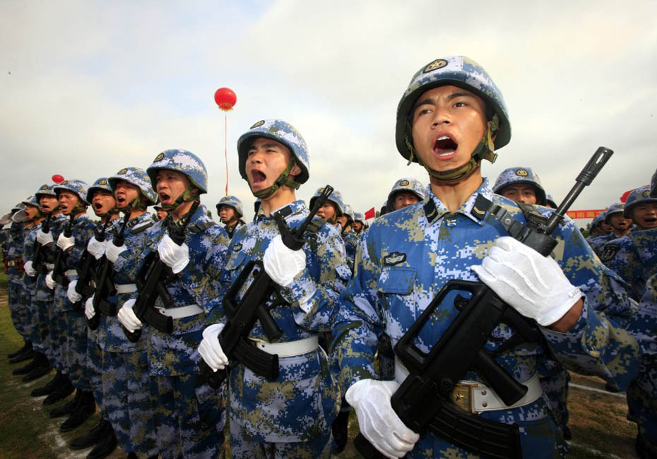 5月5日,海軍陸戰(zhàn)隊員接受檢閱。圖片來源:新華網(wǎng) 查春明攝
