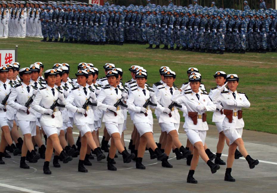海軍陸戰(zhàn)隊女兵方隊通過主席臺。圖片來源:新華網 查春明攝