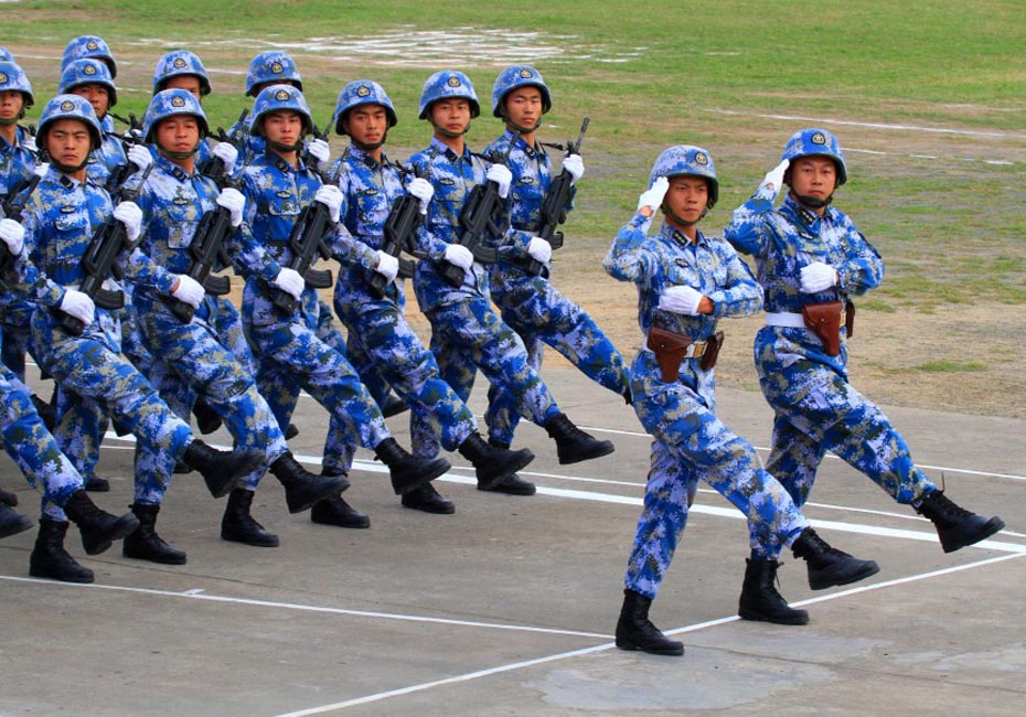 5月5日,海軍陸戰(zhàn)隊(duì)方隊(duì)通過(guò)主席臺(tái)接受檢閱。圖片來(lái)源:新華網(wǎng) 查春明攝